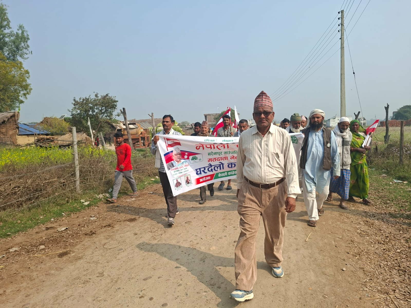 नेपाली काँग्रेस बाँके क्षेत्र नं। १ का प्रतिनिधि सभा सदस्य उम्मेदवार नारायण प्रसाद गौडेलले आज नरैनापुर गाउँपालिका वडा नं। १ र २ का एक दर्जन वस्तीहरुको घरदैलो गरेका छन् । त्यसक्रममा उनले बघौडा क्षेत्रको समस्या समाधानका लागि काँग्रेस नेतृत्वको सरकार अपरिहार्य रहेको बताएका छन् । काँग्रेस बाँकेका सभापति समेत रहेका उम्मेदवार गौडेलले प्रजातन्त्र र कांग्रेस एकै सिक्काका दुई पाटा भएको उल्लेख गर्दै विषम परिस्थितिमा निर्वाचन हुन लागेकाले विवेकपूर्ण निर्णय गर्न पनि मतदाताहरुलाई आग्रह गरे ।