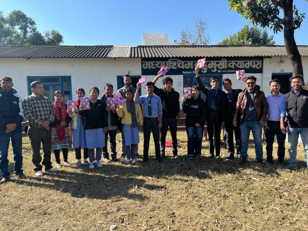 शैक्षिक क्रियाकलापसँगै अतिरिक्त क्रियाकलापमा समेत सक्रिय रहदै आएको बाँके जिल्ला नेपालगंजमा रहेको मध्यपश्चिम बहुमुखी क्याम्पस नेपालगंज शुक्रबार अतिरिक्त क्रियाकलाप गरेको छ । अतिरिक्त क्रियाकलाप अन्तर्गत शुक्रबार हाजिरजवाफ प्रतियोगिता गरेको हो । कार्यक्रममा १० समुहबाट कुशलताकासाथ सम्पन्न भएको क्याम्पस प्रमुख भगत नेपालीले जानकारी दिएका छन । प्रतियोगितामा १० समुहमध्येबाट वि.एड.तेस्रो वर्ष पहिलो,बि.बि.एस तेस्रो वर्ष द्धितिय र वि.एड.प्रथम वर्षले तृतिय स्थान हासिल गरेको थियो ।प्राध्यापक लक्ष्मी गौतम र अंगलाल बुढाथोकीले सहजीकरण गरेको शुक्रबारे कार्यक्रमको प्रमुख अतिथिमा क्याम्पस प्रमुख नेपाली रहेका थिए भने अतिथिमा प्राध्यापक डा.हरि प्रसाद तिवारी,गणेश आचार्य ,मेघ बहादुर विष्ट ,पारु शर्मा पठविर बुढाथोकी,सिताराम सुवेदी कुमार सुवेदी र कमल उपाध्याय लगायतको उपस्थित रहेको थियो ।कुल विद्यार्थी संख्या ४५० रहेको क्याम्पसमा १० समुह निर्माण गरी प्रतियोगिताको आयोजना गरीएको थियो । क्याम्पसले शिक्षण सिकाईसँगै यस्तै अतिरिक्त क्रियाकलाप समेत गर्दै आएकोमा आगामी दिनमा यस्तै अतिरिक्त क्रियाकलाप गर्दै विद्यार्थीहरुको क्षमतामा बृद्धि गर्ने र यस्ता क्रियाकलाप अन्तर क्याम्पस स्तरीय गर्ने समेत योजना रहेको मध्यपश्चिम बहुमुखी क्याम्पस बताउँछ ।