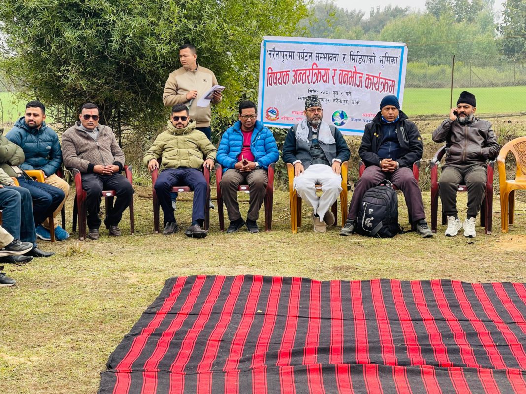 नरैनापुर क्षेत्रको पर्यटन प्रवद्र्धन गर्न मिडियाको तर्फबाट सशक्तरुपले भूमिका निभाउने बाँकेका पत्रकारहरुले प्रतिबद्धता जनाएका छन् । नरैनापुर गाउँपालिकासँगको सहकार्यमा नेपाल पत्रकार महासंघ बाँकेले बुधबार आयोजना गरेको ‘अन्तरक्रिया र वनभोज’ कार्यक्रममा उपस्थित भएका जिल्लाका पत्रकारहरुले नरैनापुरमा पर्यटनको प्रचुर सम्भावना रहेको कुरा औंल्याउँदै मिडियाबाट नै पर्यटकीय स्थलको प्रचार–प्रसार गर्न सम्भव रहेको बताए ।