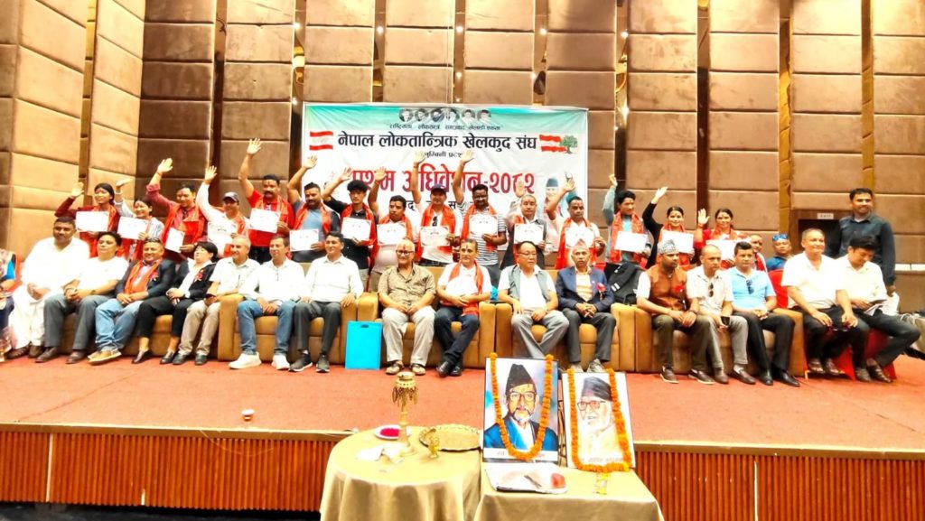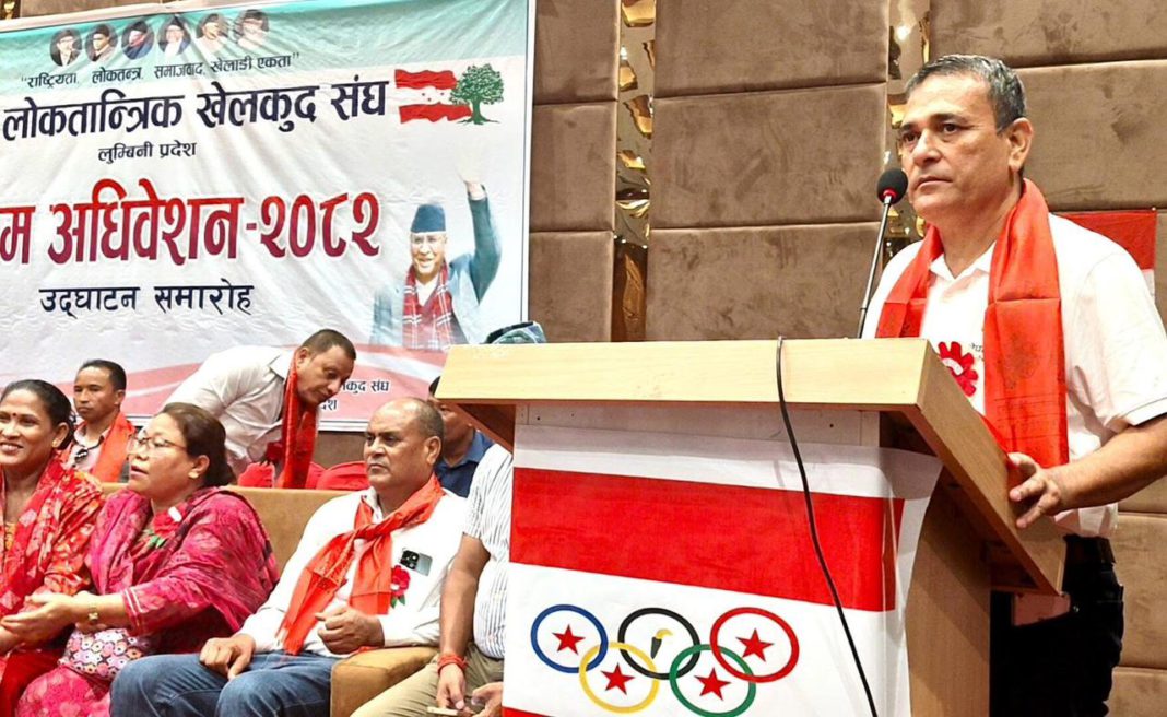 नेपाल लोकतान्त्रिक खेलकुद संघ लुम्बिनी प्रदेशको प्रथम अधिवेशनमा मंगलबार बाँकेको नेपालगंजमा सम्पन्न भएको छ । अधिवेशनले नरेन्द्र थापालाई अध्यक्षमा निर्विरोध निर्वाचित गरेको छ । यसैगरी उपाध्यक्षमा सन्तोष ओली,सचिवमा मनमोहन लम्साल, सहसचिवमा क्रमशःखुबीराम चौधरी,पुजा शर्मा,दिनेश साहनी,खिम बहादुर सोमेथापा,कोषाध्यक्षमा मनोज भण्डारी रहेका छन ।त्यसैगरी सदस्यहरुमा इश्वरि भण्डारी, मिना खनाल, पूर्णप्रसाद डाँगी, मनोहर बटाला, लक्ष्मण धर्ति, चक्र मीलाल क्षेत्री, सीमा तामाङ, बिष्णु माया कमाल, सरस्वती जी।सी।, मदनप्रसाद वर्मा, नारायण राना मगर, अन्जना बुढा मगर, खुमबहादुर धर्ति मगर, चेतना बुढा मगर, धनश्याम थापा, सागर सोमे, सत्य मुनि शाक्य, नारायण जी।सी। र अनिल धर्ति मगर निर्वाचित भएका छन् ।